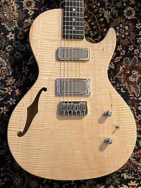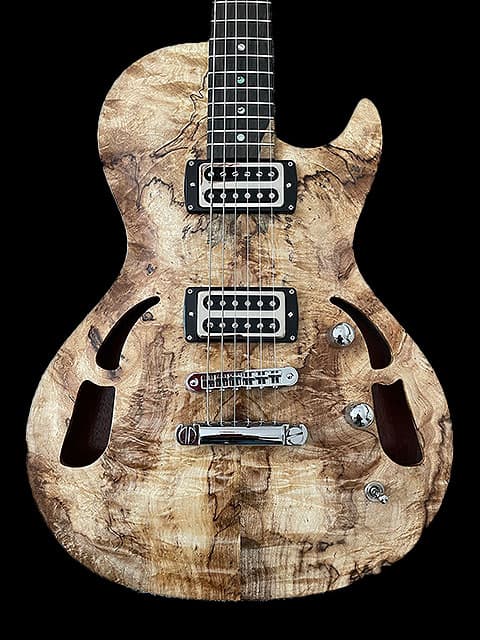 Inspired by classic acoustic parlor guitars, this 24.75" scale setneck electric parlor Single cut template set can be built either as a solid body or chambered. No control cavity is required as the F-hole is large enough to pass a potentiometer through.