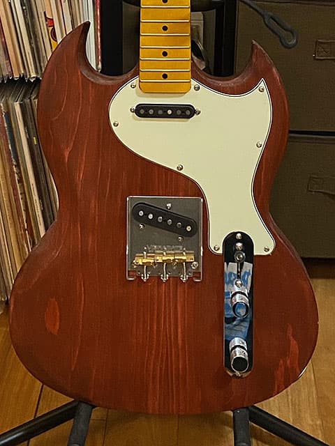 Mash a T-style together with an SG-style and you get this! Includes matching pickguard template. Ask about custom pickup options.